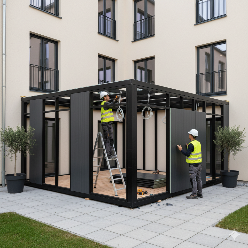 • ملاحق سكنية بألواح ساندوتش بانل مقاومة للحرارة والرطوبة.
