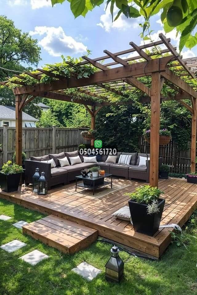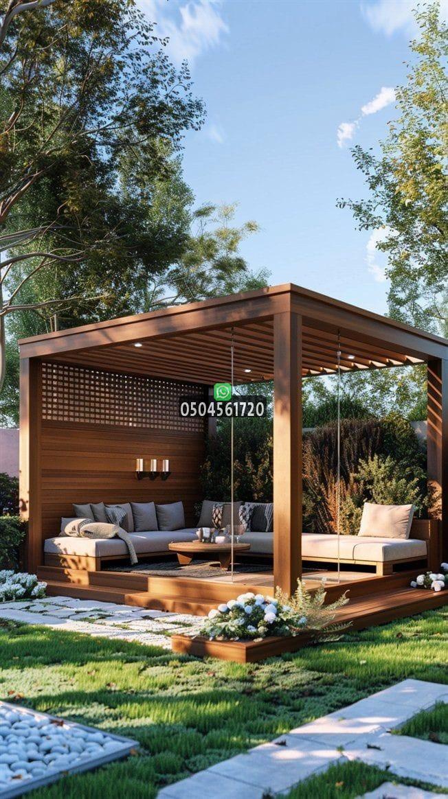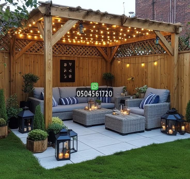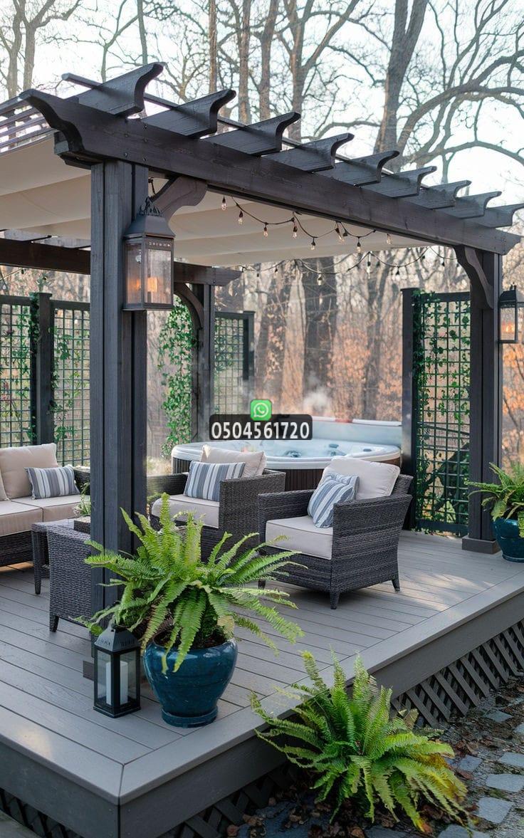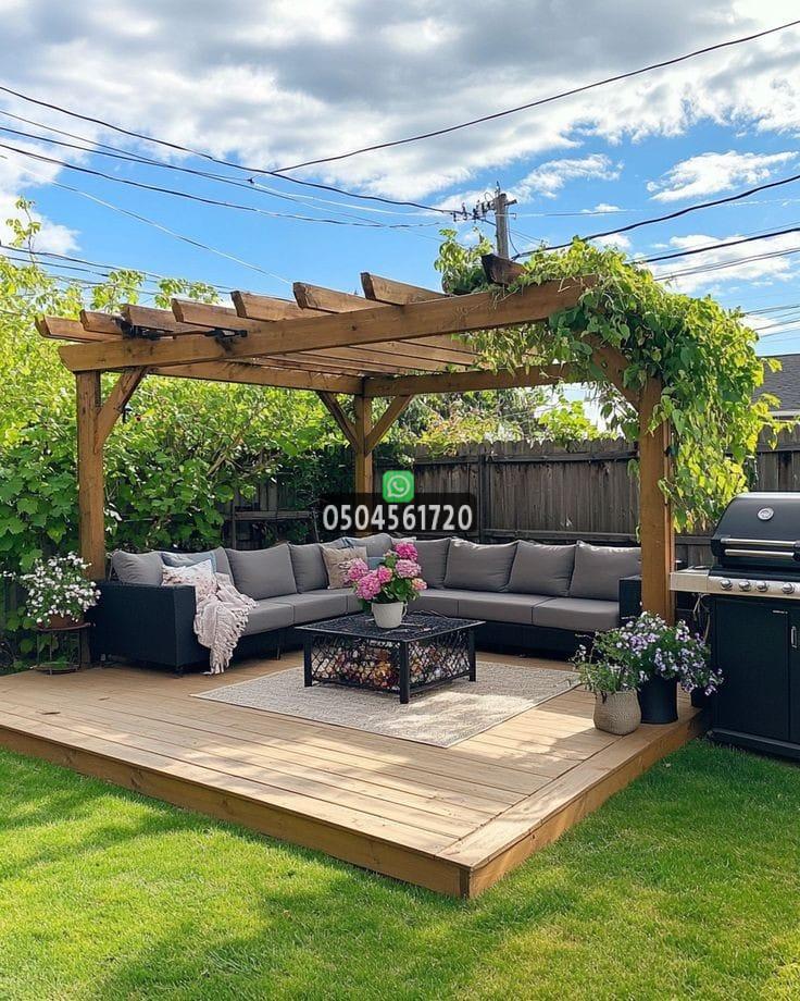 إضافة أثاث خارجي مريح، سجاد، وإنارة مناسبة يجعل البرجولة مركز الجذب في الحديقة.