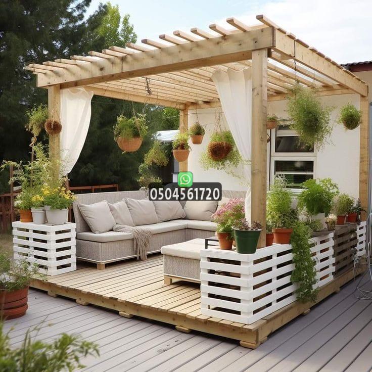 نعم، كثير من العملاء يدمجون تركيب الأرضيات الحجرية أو الخشبية أو العشب الصناعي مع البرجولة لإكمال المظهر العام.