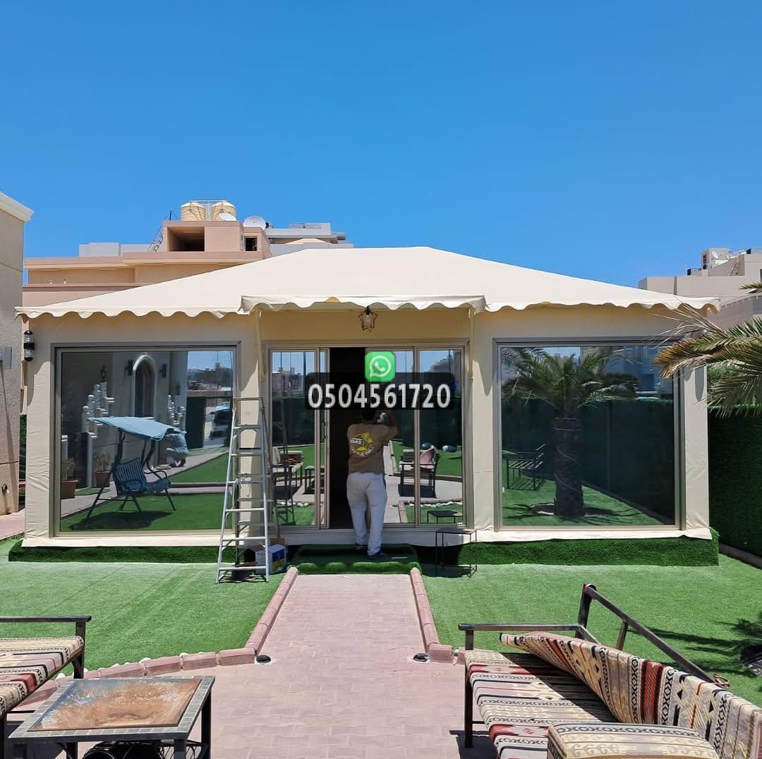 | مرحلة التركيب | تركيب الهيكل الأساسي، تثبيت القماش، إضافة الديكور الداخلي، تنفيذ الإضاءة والكهرباء عند الطلب. |