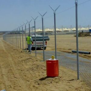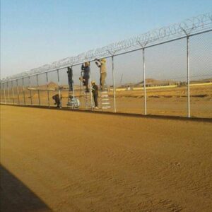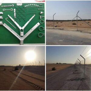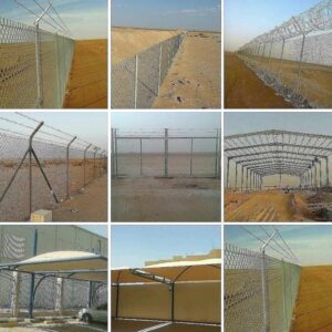 يتم اعتماد المتر الطولي للتوريد والتركيب من خلال عمل قواعد خرسانية عاديه على مسافات متقاربه وصب القواعد صبة خرسانية مقاومة وعمل عمدان من المواصير المجلفنة ويتم تركيب وايرات الربط و شبك حماية سفلي بالارتفاع المطلوب وعمل الاسلاك الشائكه حسب الطلب وتركيب البوابات حسب المخططات او الاقتراحات المراد تركيبها على اكمل وجه طبقا لأصول الصنعه وتعليمات المختصين والاستشاريين والمهندس المشرف